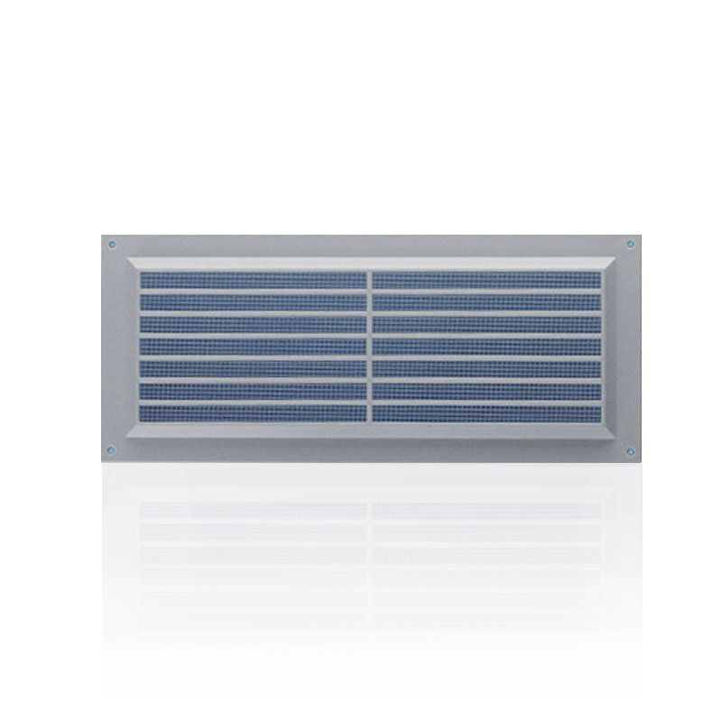 Решетка применяется для декорирования выходов систем вентиляции, оборудована защитной сеткой и наклонными жалюзи.